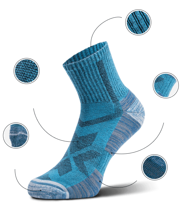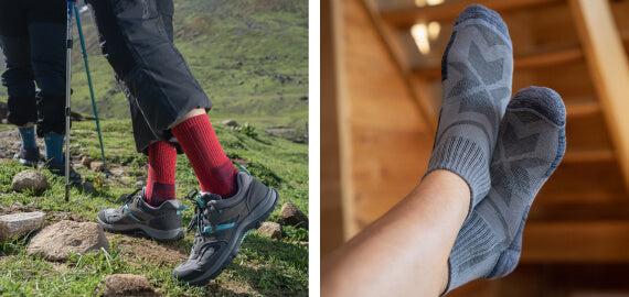 Jede Route hat ihre eigenen Besonderheiten, und deine Socken sollten sich daran anpassen. Egal wie das Wetter ist, unsere Wandersocken bieten dir die richtige Passform, Atmungsaktivität und Halt, damit du dich von Anfang bis Ende der Route bequem bewegen kannst.