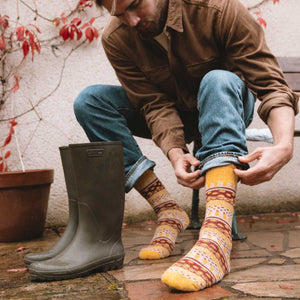 Der Name Sofia bedeutet Weisheit, und es wäre sicher sehr weise von dir, dir schnell ein Paar dieser Socken zu schnappen. Die Sofia-Socken bieten einen modernen Hauch von klassisch nordischem Muster, mit den originellen, kräftigen Farben Pink, Gelb und Hellbraun, die ein Gefühl von Selbstvertrauen und Stil vermitteln. Aus der Mountain-Collection kannst du dich auch auf die Sofia-Socken verlassen, wenn es um Wärme geht. Mit diesen hochwertigen Socken wirst du nur ein Problem haben - ob du deinen Freunden erzählst, woher du sie hast!