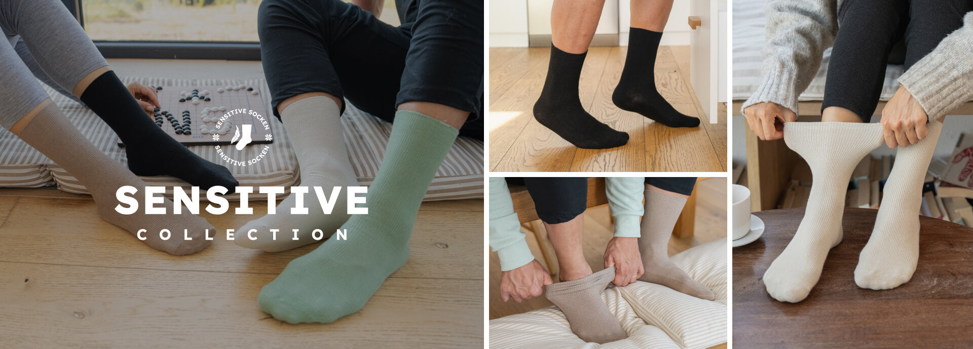 Diese Socken für empfindliche Füße reichen bis zur Mitte der Wade und bieten einen sanften Halt, der perfekt für den Alltag ist, ohne zu drücken oder die Bewegung einzuschränken.